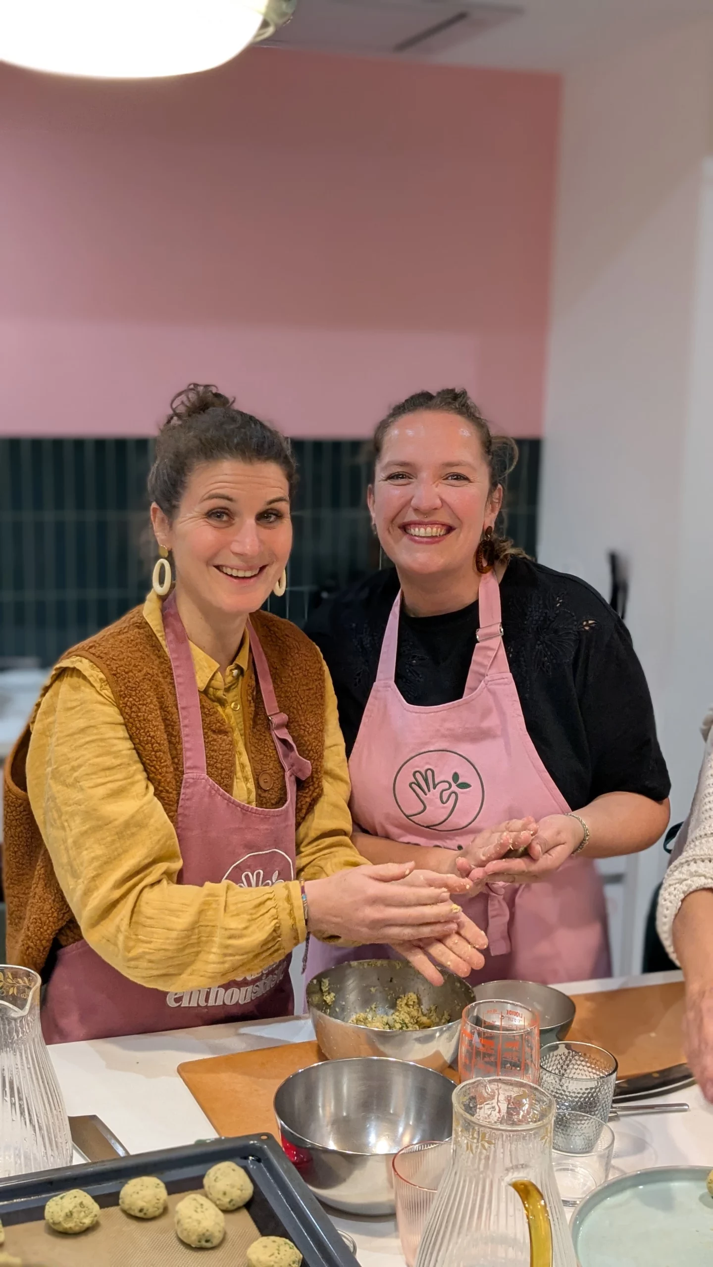 Passionnée depuis toujours, c’est avec sa grand-mère que Cécile a appris les bases de la cuisine. D'abord commerciale de métier, elle décide de se reconvertir en 2017 : elle passe ses diplômes en cuisine et fonde Ma cuisine enthousiaste pour pouvoir enfin vivre de sa passion. Depuis maintenant 7 ans, elle anime des ateliers cuisine conviviaux, d'abord de façon nomade, puis à l'Atelier Enthousiaste, lieu qu'elle fonde avec Mehdi en septembre 2023. En parallèle, Cécile est très active sur les réseaux sociaux et y partage ses meilleures recettes en vidéos.
