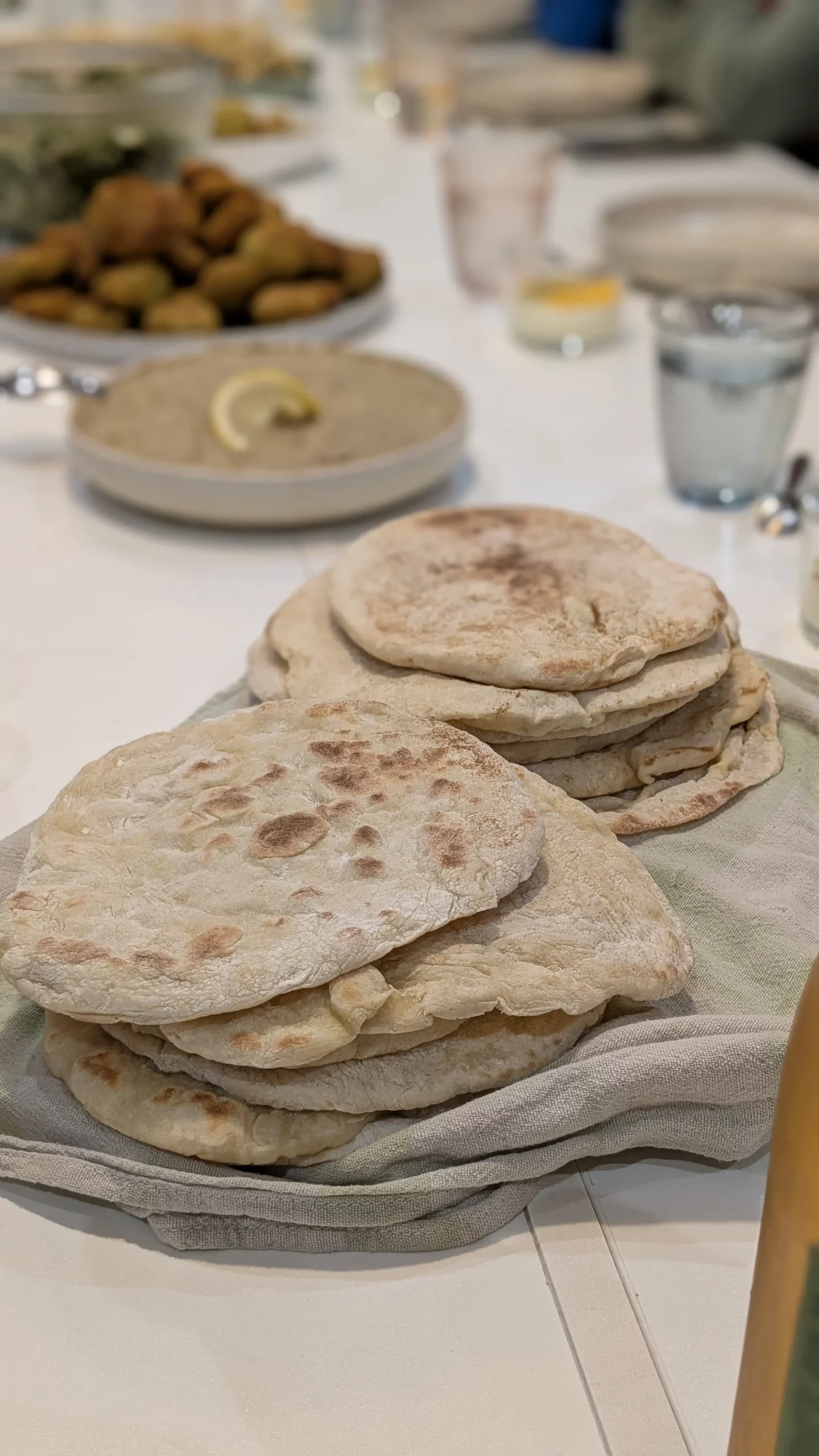 Après avoir cuisiné, nous passons tous à table pour déguster notre mezze : l’occasion idéale pour continuer à échanger autour d’une boisson fraîche offerte par nos soins.