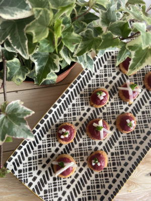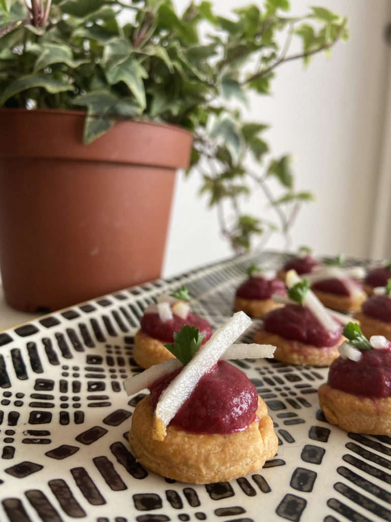 Je reviens aujourd’hui avec une recette pour l’apéro : mes petits sablés parmesan, crème de betterave & poire. C’est une recette d’amuse-bouche que j’ai créé pour un dîner lors d’une prestation chef à domicile. Comme vous le savez, ça me tient à coeur de mettre en avant et de cuisiner les légumes et fruits de saison. C’est donc tout naturellement que j’ai pensé à travailler la betterave et la poire pour cette recette. Voici donc comme réaliser ces petits amuses-bouches simplissime et qui vont faire de l’effet à vos convives !