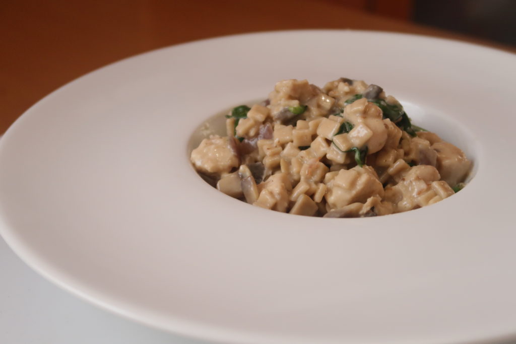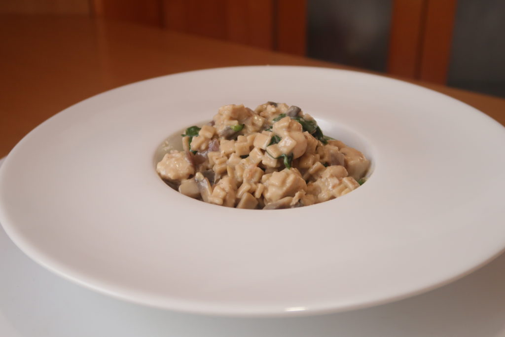 Faites revenir l’oignon dans votre poêle et ajoutez les champignons. Laissez cuire quelques minutes puis ajoutez le poulet et laissez cuire à nouveau. Ajoutez les crozets puis mélangez bien. Ajoutez alors le bouillon petit à petit : lorsqu’il s’est évaporé, ajoutez une louche supplémentaire. Terminez par ajouter les épinards, la crème fraîche et le fromage et mélangez de nouveau. Servez bien chaud.