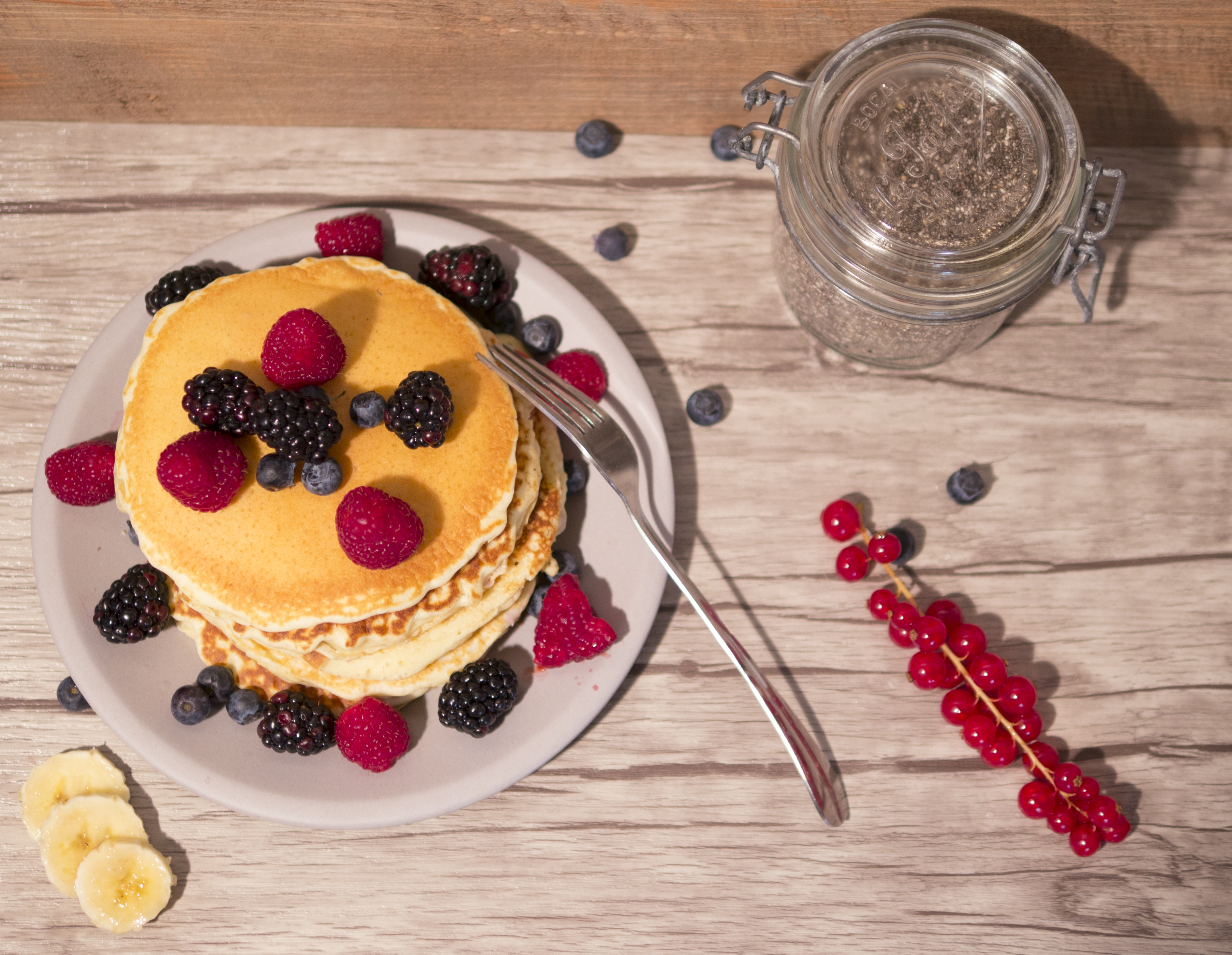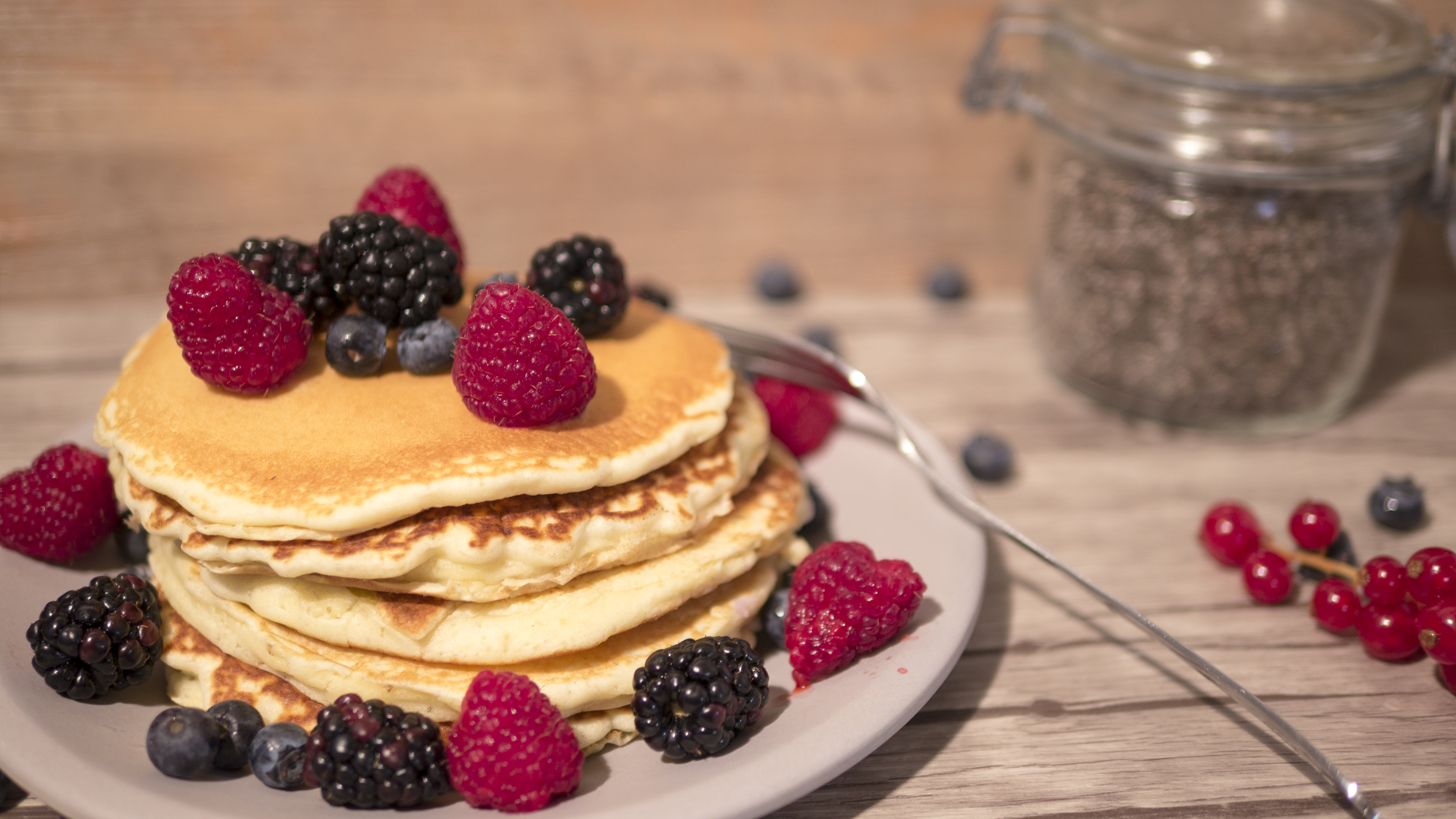 Vous pouvez agrémenter vos pancakes de chocolat, chantilly, banane, myrtille, framboise, fraises…